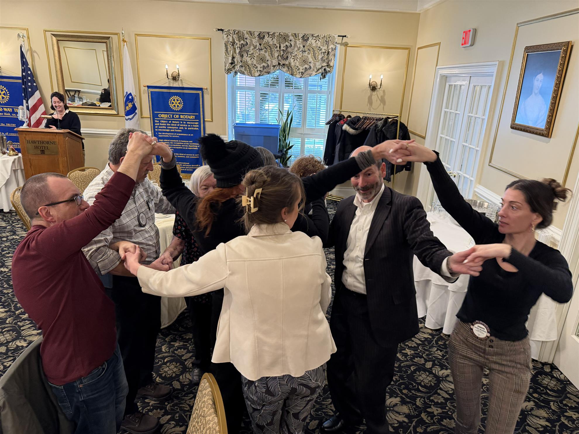 Lexi began her presentation by offering the Club the chance to participate in an activity RYLA students do at the beginning of their stay or to just hear the presentation as prepared. Our adventurous group chose the activity, and we broke into groups to become human knots. Groups of eight joined hands across a circle and had to untangle themselves in an 8-minute time frame. It is unclear if any of the groups succeeded without cheating, but it was definitely clear that everyone had fun trying!