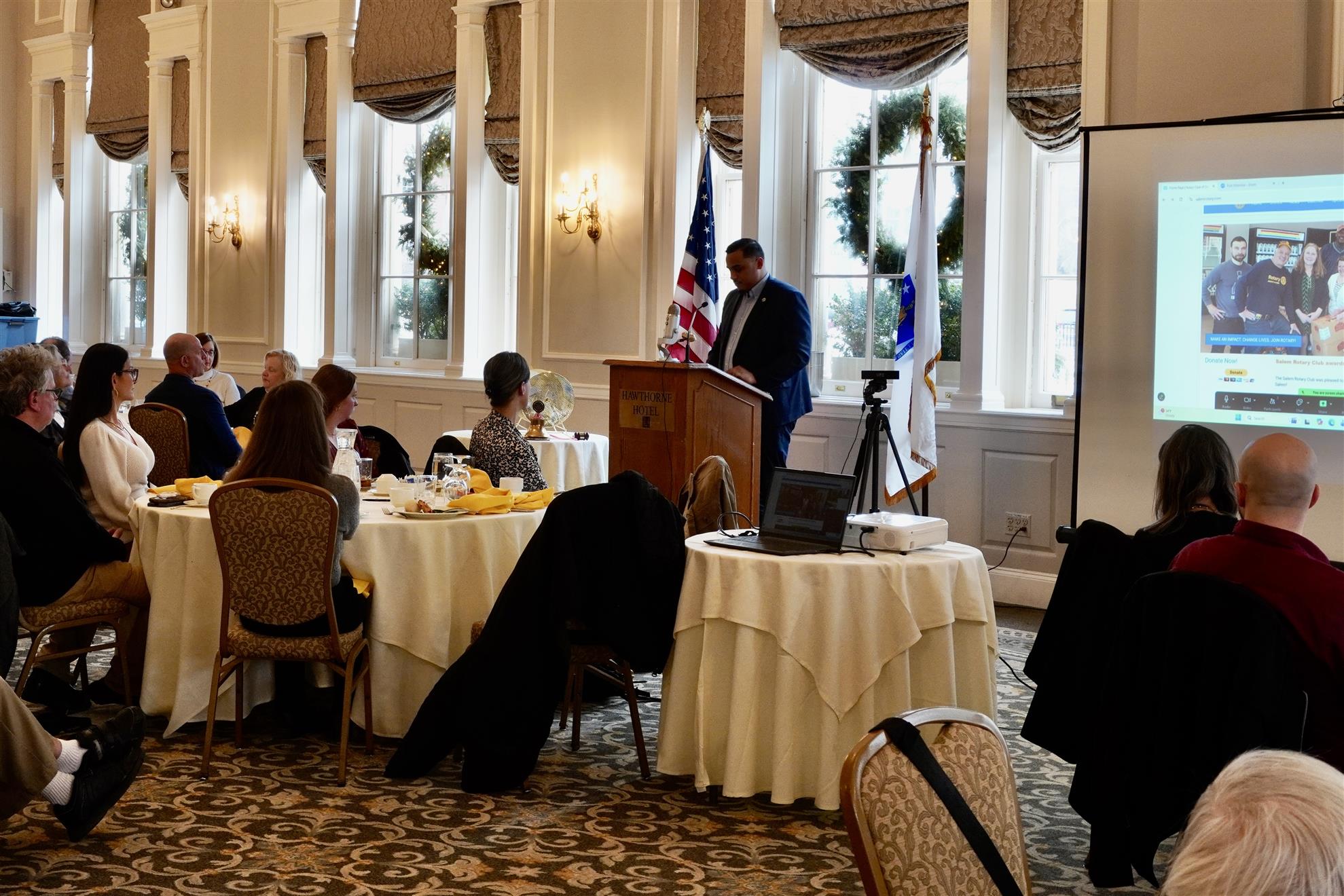 Cruz closed his prepared remarks with a candid assessment of the national political climate. He expressed deep concern about the concentration of executive power at the federal level, erosion of democratic norms, and the withdrawal of federal commitments that the Commonwealth depends on. He called on Rotarians, as civic and business leaders, to help articulate a positive vision for the country's future, noting that Salem's own history as a community that has played a role in shaping American democracy gives it a particular responsibility to rise to this moment. He said the clearest sign of hope he has seen has come not from elected officials but from ordinary citizens who have organized, contested special elections, and shown up in large numbers. He asked those in the room to bring that same energy to defining what kind of state and country they want to leave behind.